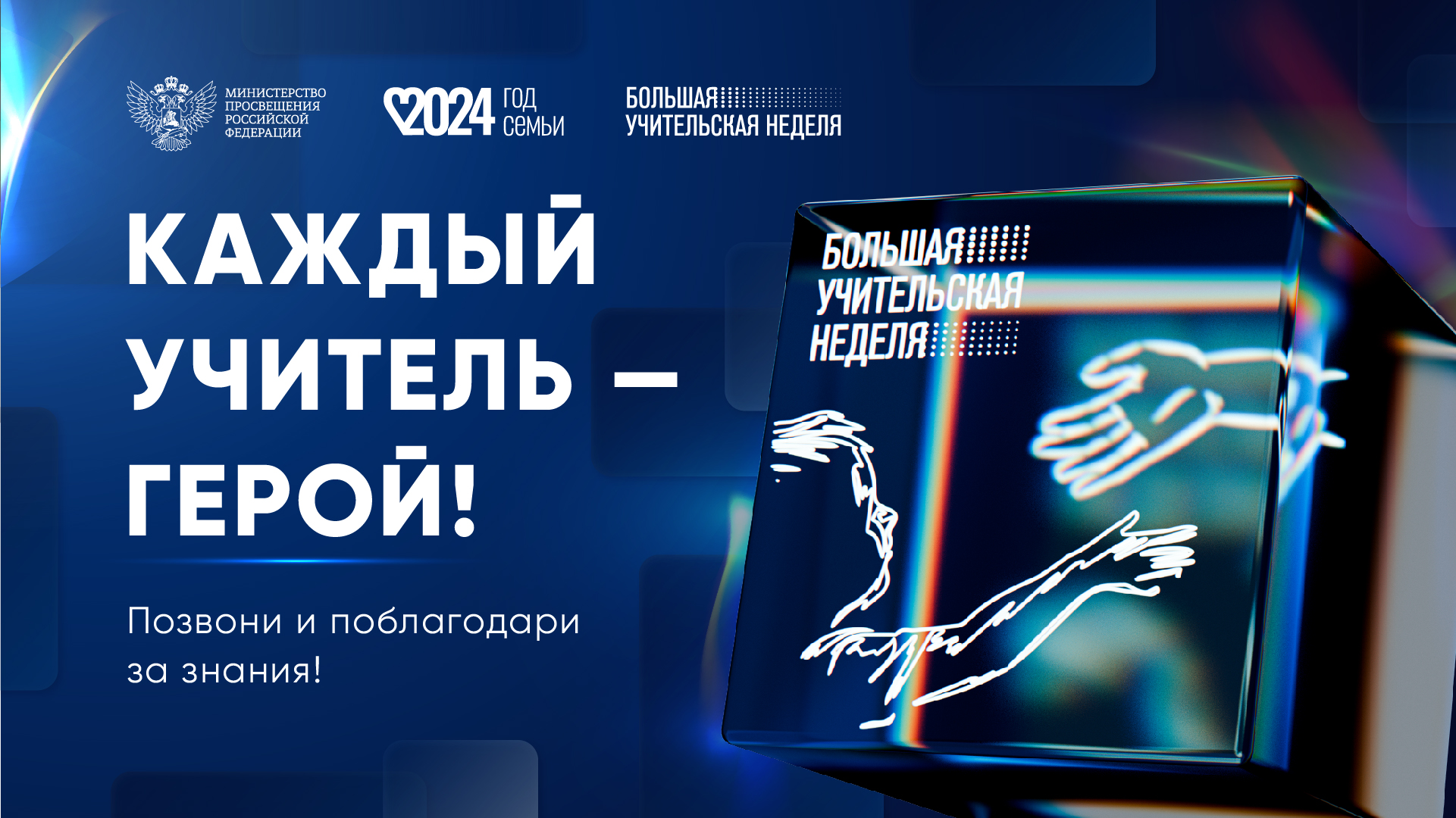 03.10.2024С 30 сентября по 7 октября 2024 г. Минпросвещения России планируетсяпроведение Большой учительской недели (далее - БУН), которая включает в томчисле организацию тематических мероприятий, приуроченных к Международномудню учителя, и информационную кампанию в субъектах Российской Федерации.В 2024 году тема БУН - «Учителя - герои».